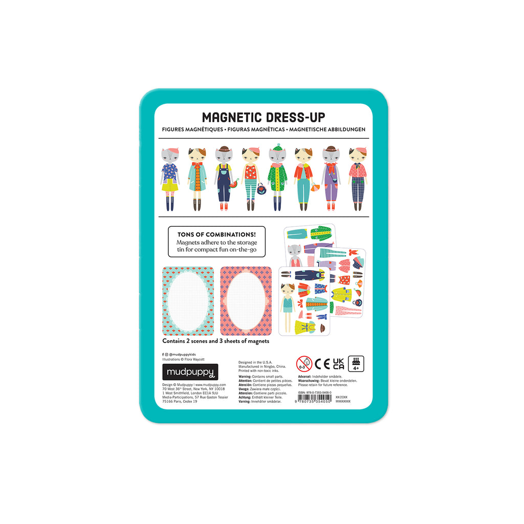 Mudpuppy's Cat Fashion Magnetic Dress-up comes with 2 illustrated background frames and 3 sheets of magnets for dressing up these adorable feline friends. The sturdy tin package offers hours of imaginative play with easy cleanup and storage of pieces. Mudpuppy Magnetic Tins are the perfect children's travel toy and quiet time activity.