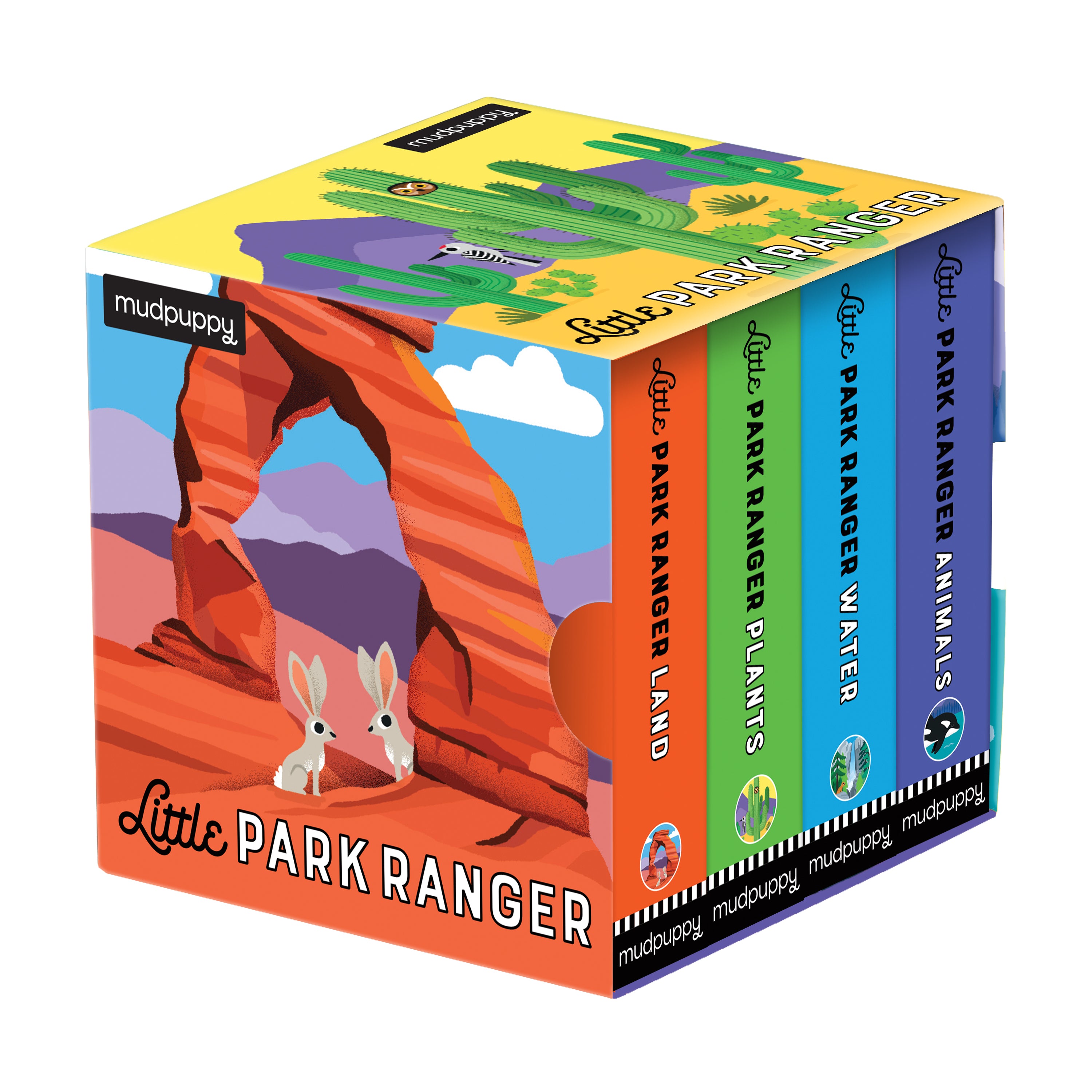 Discover the beauty of the U.S. National Parks with your own little park ranger from coast to coast! 16 stunning parks are featured including the Great Smoky Mountains, Big Bend, Glacier Bay, and more. The Board Book Set includes 4 mini board books, 8 chunky pages per book, packaged together in a slipcase box.