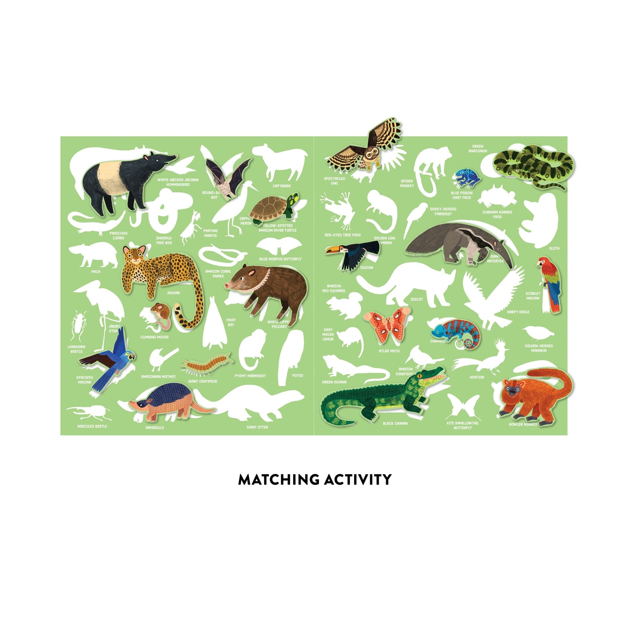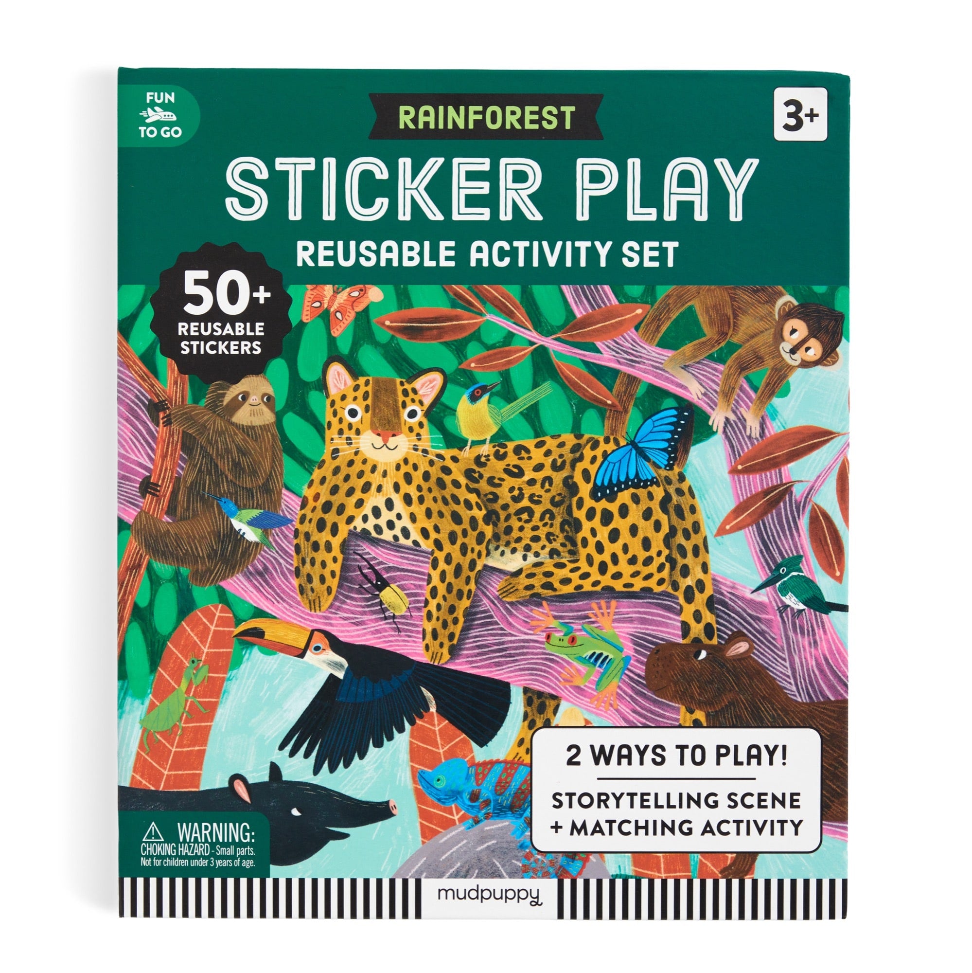 Explore the wild wonders of the rainforest with this engaging reusable sticker activity set! Hannah Abbo's vibrant illustrations bring the jungle to life with colorful creatures and lush landscapes just waiting for creative placement. Featuring repositionable and reusable stickers, it's perfect for hours of imaginative play without the permanent mess. Kids can create new scenes again and again, developing storytelling skills and artistic confidence. There are two ways to play! Children can match their animal stickers to the white silhouettes and names on the sheet, OR, they can place stickers where ever they want! Ideal for car rides, quiet time, or rainy days—portable fun that sparks endless jungle adventures!